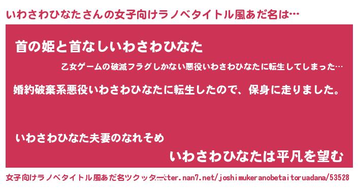 | 男性向けラノベタイトル風あだ名 | 『イワサワヒナタスレイヤー』 |