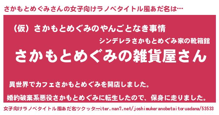 | ファンタジー風あだ名 | 『エターナルサカモトメグミー』 |