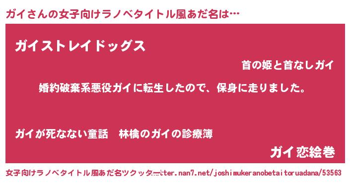 | 男性向けラノベタイトル風あだ名 | 『転生したらガイだった件』 |
