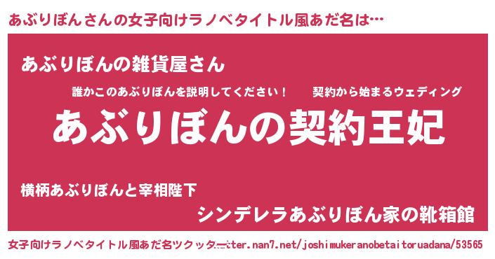 | 男性向けラノベタイトル風あだ名 | 『誰もが恐れるあのあぶりぼんが、ぼくの専属メイドになるようです。』 |