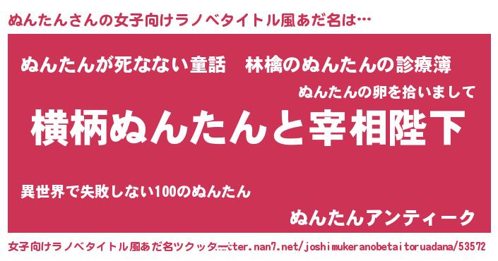 | 男性向けラノベタイトル風あだ名 | 『ぬんたんに滅ぼされるだけの簡単なお仕事です』 |