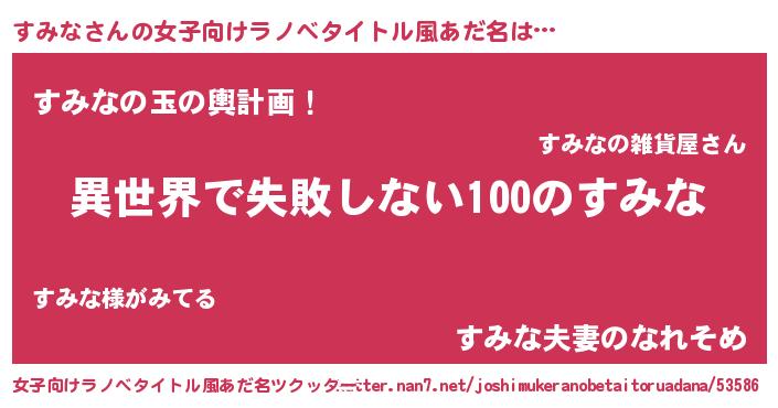 | ヒーロー風カッコイイあだ名 | 『ネオスミナ』『慈愛の使者すみな』 |