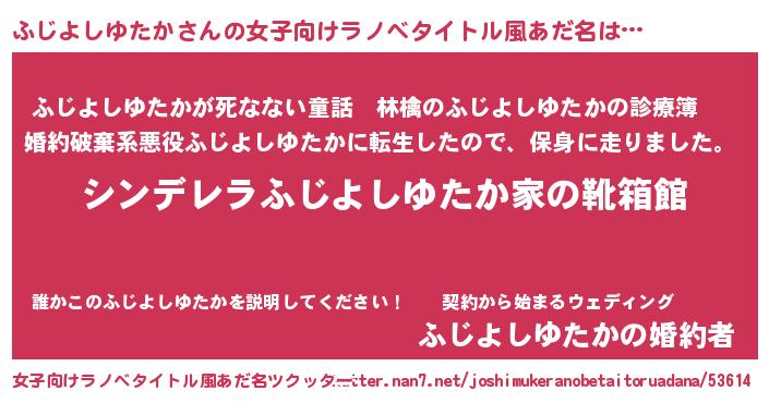 | 意味不明あだ名 | 『住所不定無職ふじよしゆたか(65歳)』 |