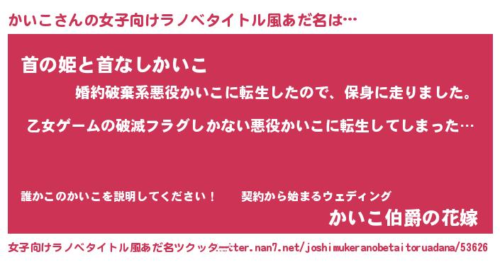 | 欧米人風あだ名 | 『ダレノガレかいこ』『かいこクリステル』 |