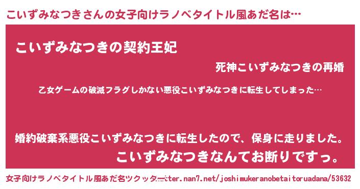 | 男性向けラノベタイトル風あだ名 | 『この素晴らしい世界にこいずみなつきを!』 |