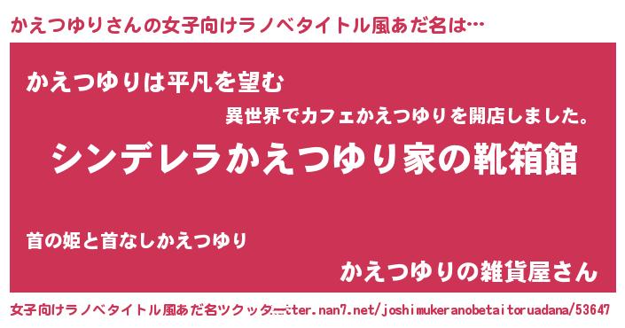 | 意味不明あだ名 | 『とにかく怪しいかえつゆり』 |