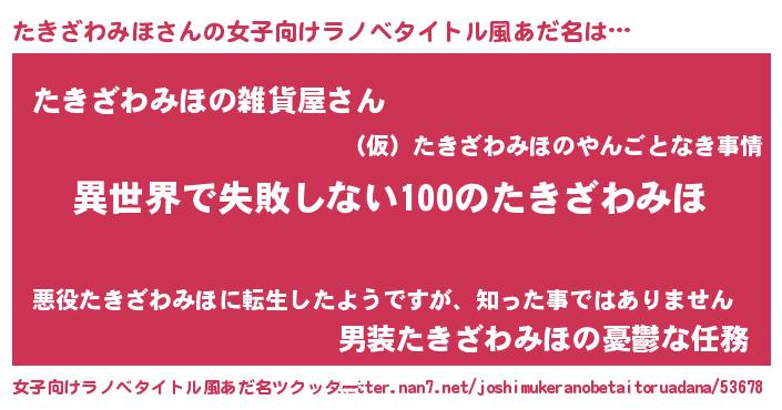 | 男性向けラノベタイトル風あだ名 | 『たきざわみほという概念が存在しない退屈な世界 』 |