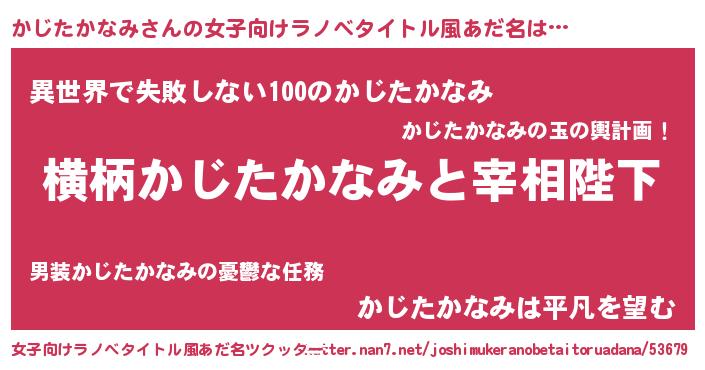| 男性向けラノベタイトル風あだ名 | 『かじたかなみに滅ぼされるだけの簡単なお仕事です』 |