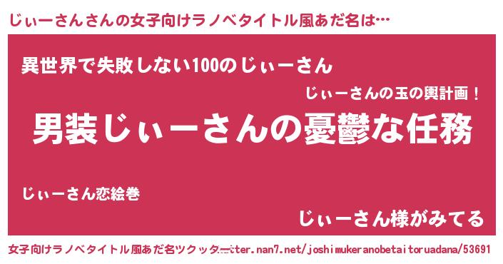| 男性向けラノベタイトル風あだ名 | 『うちのじぃーさんが世界を掌握している!』 |