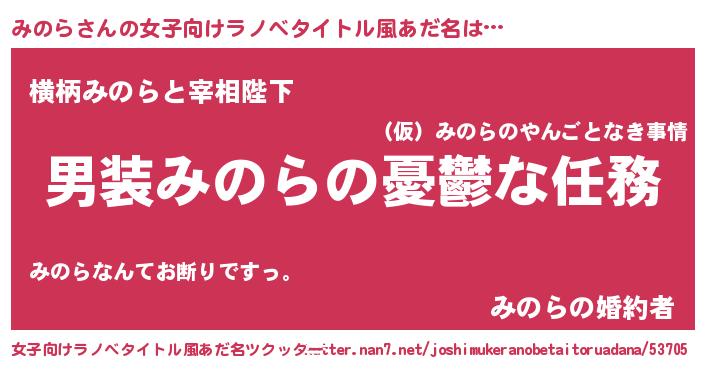 | 男性向けラノベタイトル風あだ名 | 『うちのみのらが世界を掌握している!』 |