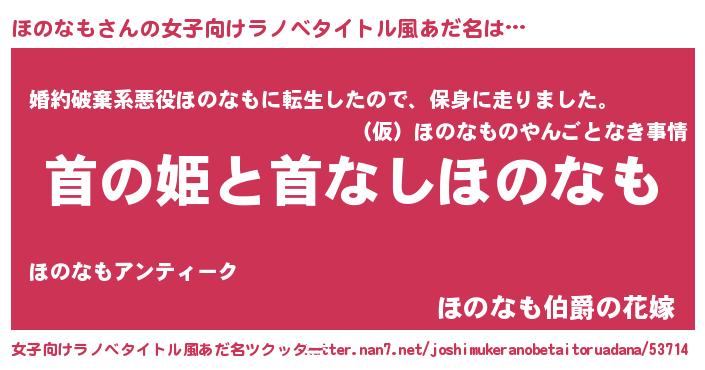 | 男性向けラノベタイトル風あだ名 | 『はたらくほのなもさま!』 |