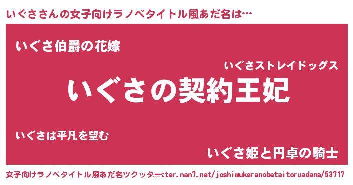 | 男性向けラノベタイトル風あだ名 | 『誰もが恐れるあのいぐさが、ぼくの専属メイドになるようです。』 |