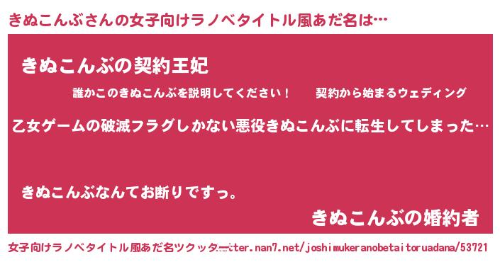 | ヘコむあだ名 | 『きぬこんぶ(震え声)』『なまこ酢』 |