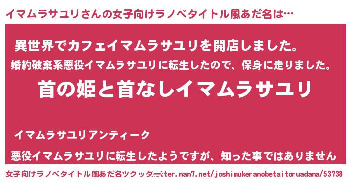 | 男性向けラノベタイトル風あだ名 | 『はたらくイマムラサユリさま!』 |