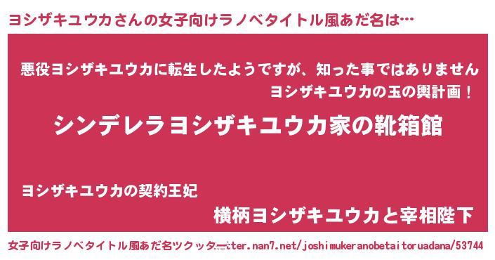 | ヘコむあだ名 | 『ヨシザキユウカ(笑)』『ヨシっ子』 |