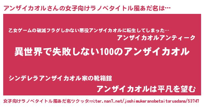 | 意味不明あだ名 | 『永久保存アンザイカオル』 |