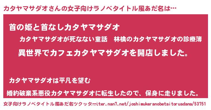 | ヘコむあだ名 | 『カタヤマサダオ(苦笑)』『カタっ子』 |