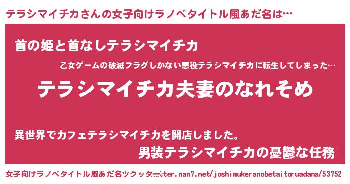 | 男性向けラノベタイトル風あだ名 | 『おまえをオタクにしてやるから、俺をテラシマイチカにしてくれ! 』 |