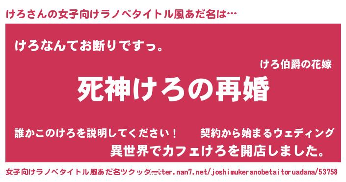 | 男性向けラノベタイトル風あだ名 | 『ノーゲーム・ノーケロ』 |
