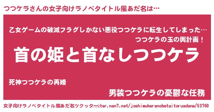 | 意味不明あだ名 | 『住所不定無職つつケラ(93歳)』 |