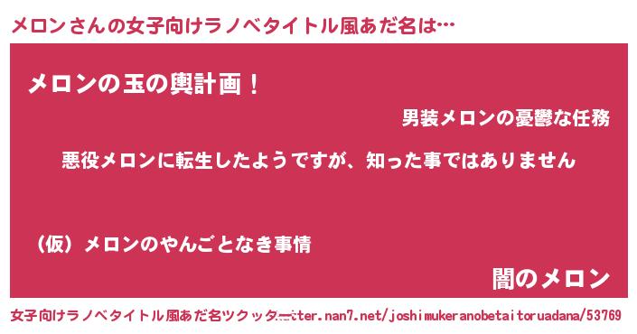 | 男性向けラノベタイトル風あだ名 | 『この素晴らしい世界にメロンを!』 |