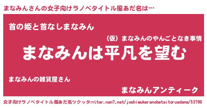 | 胡散臭い通販商品みたいなあだ名 | 『信頼と実績のペンダント…その名も「まなみん」』 |