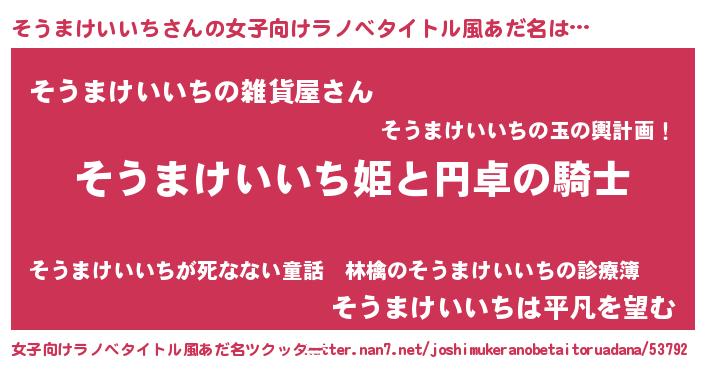 | 男性向けラノベタイトル風あだ名 | 『そうまけいいちの憂鬱』 |
