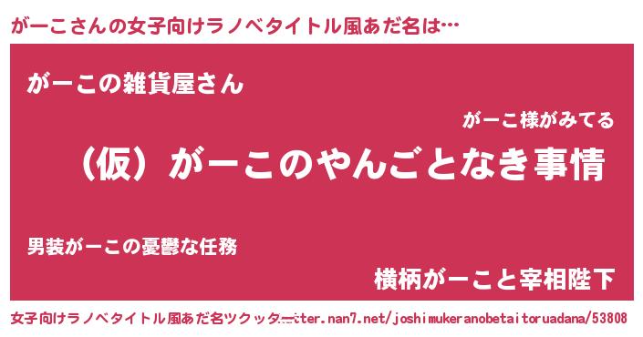 | 男性向けラノベタイトル風あだ名 | 『がーこの憂鬱』 |