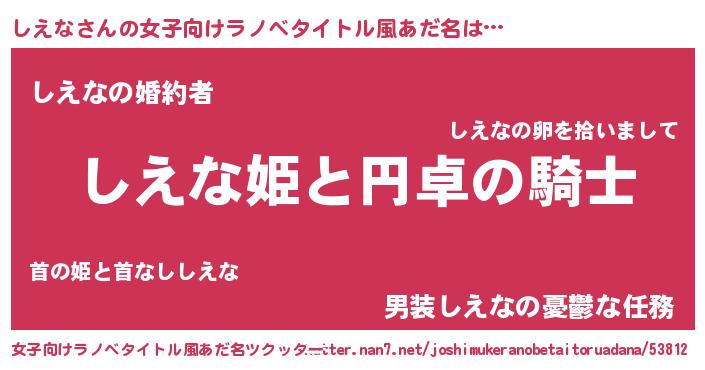 | ファンタジー風あだ名 | 『シエフェル』『エターナルシエナー』 |