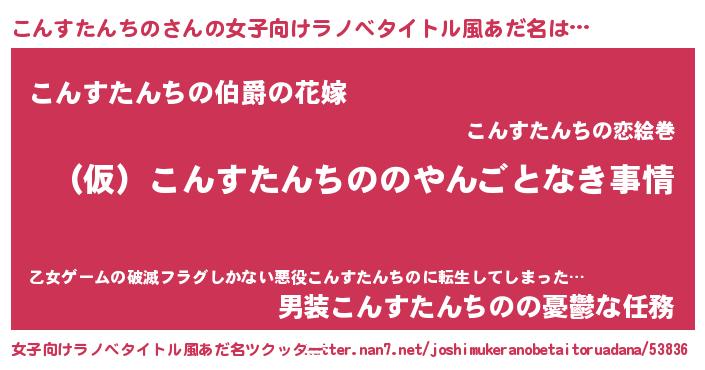 | 男性向けラノベタイトル風あだ名 | 『こんすたんちのの憂鬱』 |