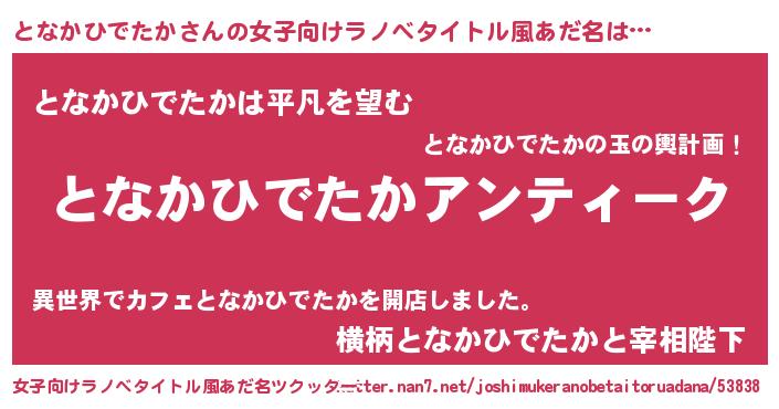 | 意味不明あだ名 | 『自称となかひでたか』 |