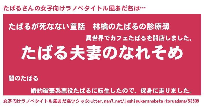 | 意味不明あだ名 | 『眠気覚ましガムたばる味』『自称たばる』 |