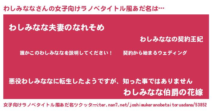 | 男性向けラノベタイトル風あだ名 | 『ワシミナナアートオンライン』 |