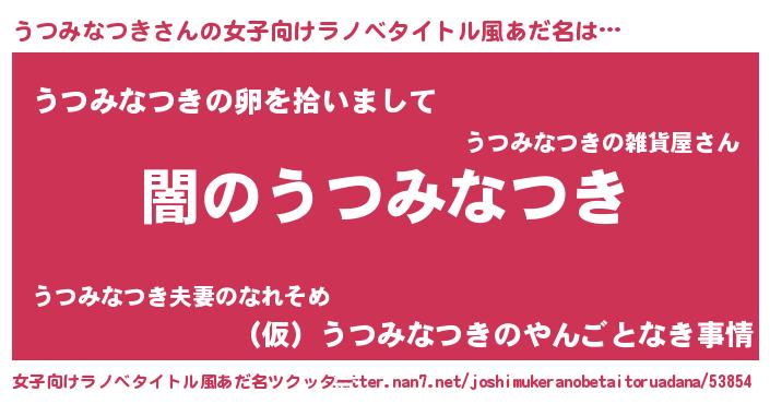 | 男性向けラノベタイトル風あだ名 | 『Re:うつみなつきから始める異世界生活』 |