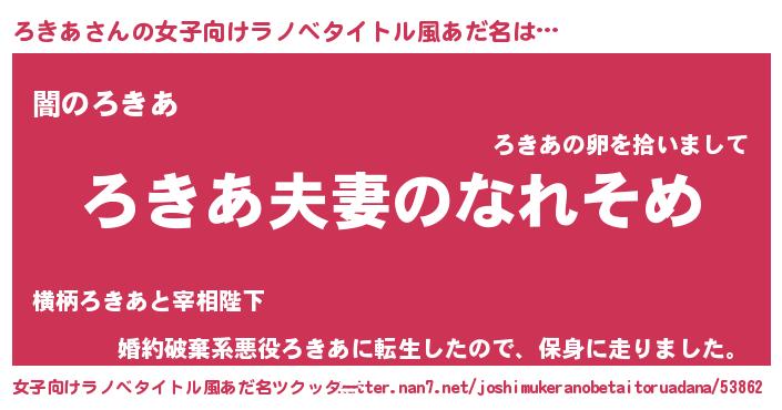 | ヘコむあだ名 | 『ろきっ子』『ろきにー』『なまこ酢』 |