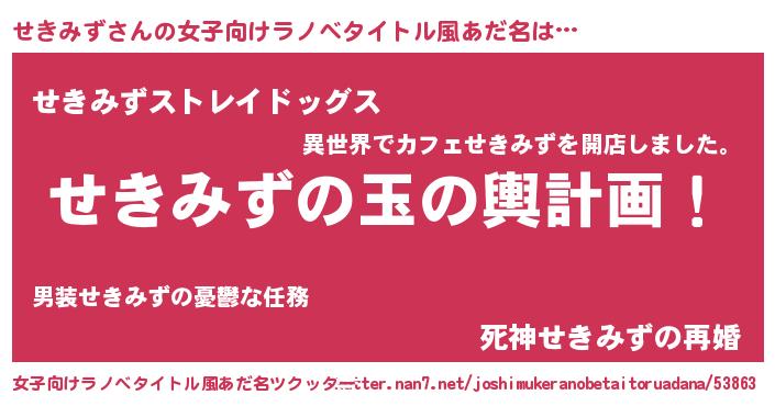 | 恥ずかしいあだ名 | 『セキミズデラックス』『せきちん』 |