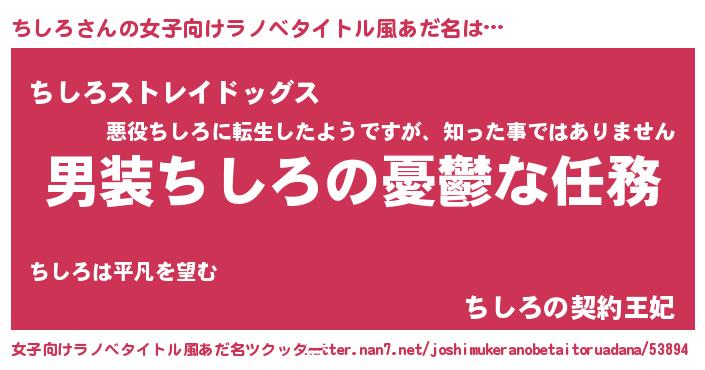 | 男性向けラノベタイトル風あだ名 | 『うちのちしろが世界を掌握している!』 |