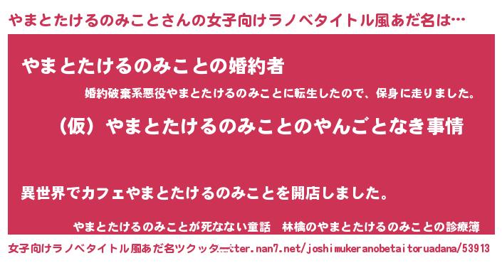 | 男性向けラノベタイトル風あだ名 | 『やまとたけるのみことの憂鬱』 |