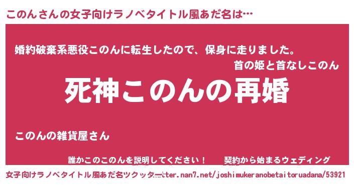 | 男性向けラノベタイトル風あだ名 | 『ノーゲーム・ノーコノン』 |