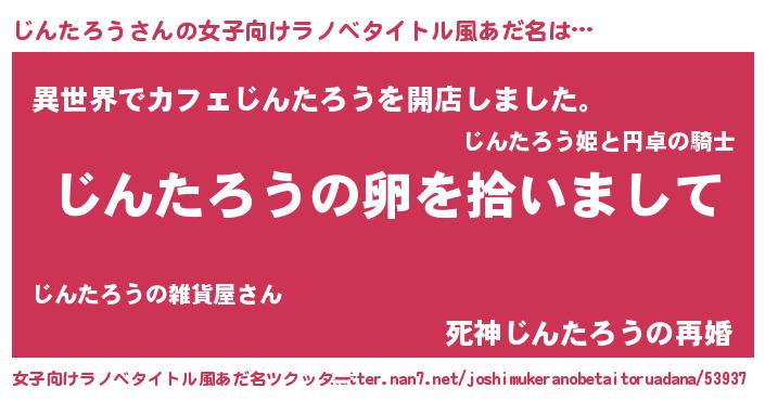 | 男性向けラノベタイトル風あだ名 | 『ダンジョンにじんたろうを求めるのは間違っているだろうか』 |