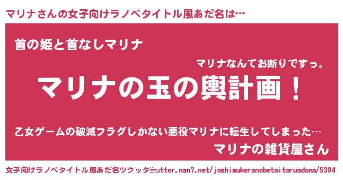 | 男性向けラノベタイトル風あだ名 | 『転生したらマリナだった件』 |