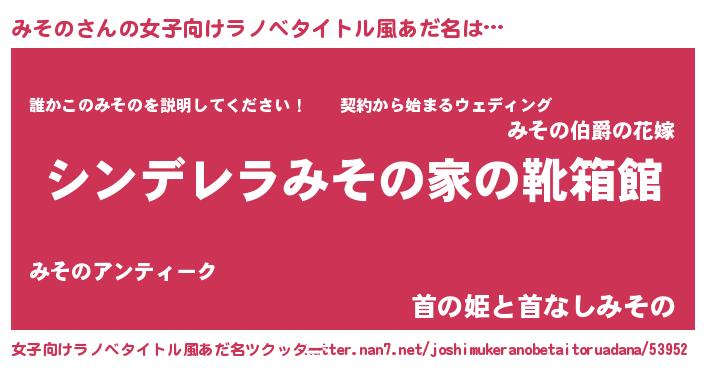 | ヒーロー風カッコイイあだ名 | 『スーパーミソノ』『ウルトラみそのマン』 |