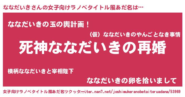 | 男性向けラノベタイトル風あだ名 | 『ノーゲーム・ノーナナダイキ』 |
