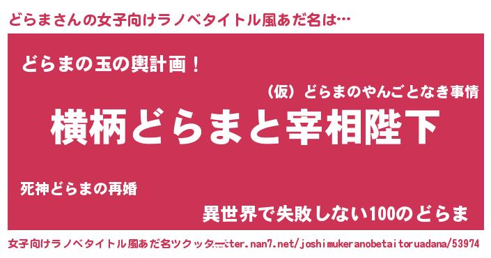 | 男性向けラノベタイトル風あだ名 | 『どらまに滅ぼされるだけの簡単なお仕事です』 |