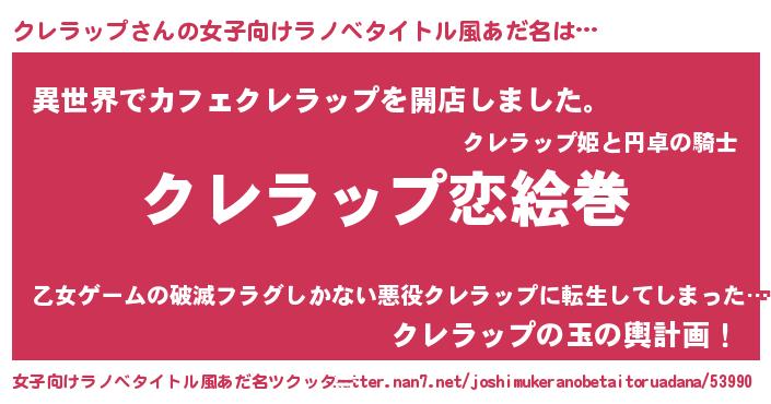 | ヘコむあだ名 | 『クレラップ(遠い目)』『クレもー』 |