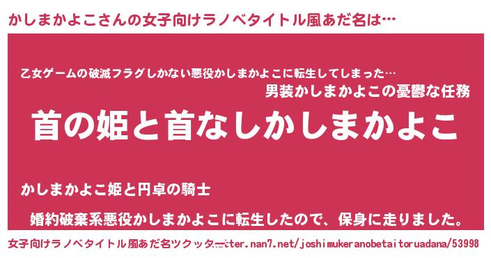 | 男性向けラノベタイトル風あだ名 | 『はたらくかしまかよこさま!』 |