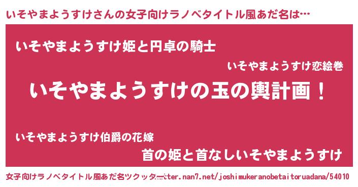 | 男性向けラノベタイトル風あだ名 | 『転生したらいそやまようすけだった件』 |