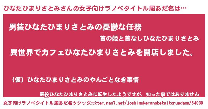 | 胡散臭い通販商品みたいなあだ名 | 『前代未聞の水素水…その名も「ひなたひまりさとみ」』 |