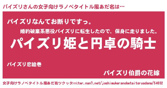 | 男性向けラノベタイトル風あだ名 | 『パイズリの憂鬱』 |