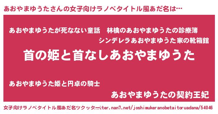 | ヘコむあだ名 | 『あおやまゆうた(爆)』『あおっふぃ~』 |
